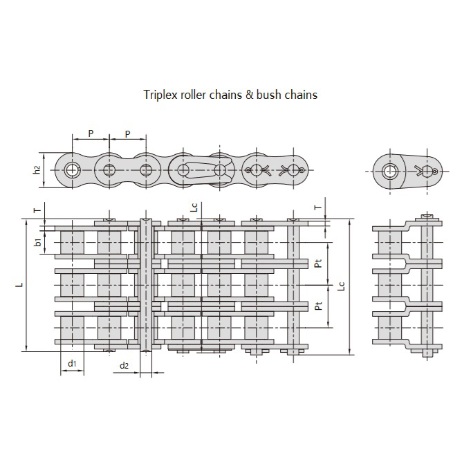 • Széles választék a láncszem méretekben:6,35 mm-től 76,2 mm-ig terjedő méretekben gyártva, szegecselt vagy osztott kivitelben, egy-, több- vagy háromszálas kivitelben.