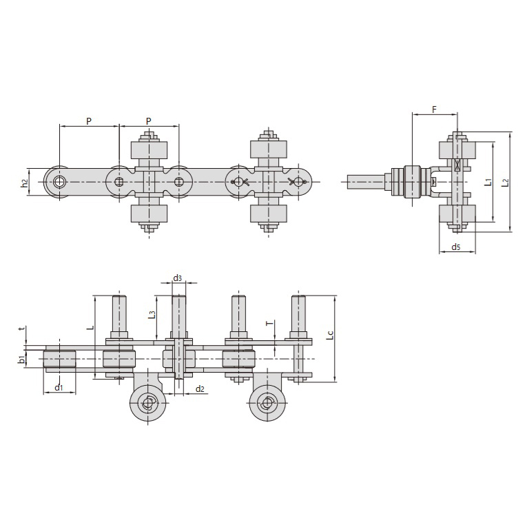 - Lánclemezekből, csapokból, csuklós blokk keresztcsuklókból és görgőszerelvényekből (görgők, csapágyak, csapok) áll, ami rugalmasságot, tartósságot és nagy hatékonyságot biztosít.