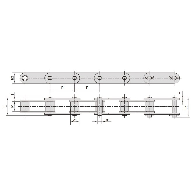 - A láncszemek közötti megerősített hüvelyek szükség esetén lehetővé teszik a névleges osztás túllépését, miközben a biztonságos és megfelelő működéshez szükséges hézagot megőrzik.