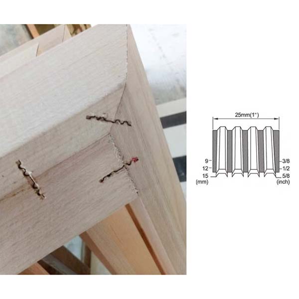 A hullámos szög hullám alakú, mindkét oldalán fogazott élű, mint egy fűrészfog, amely a fűrészfogakhoz hasonlóan beleharap az anyagba, és nem könnyű kihúzni, még erős rezgés esetén is szilárd szerkezetét megőrzi.