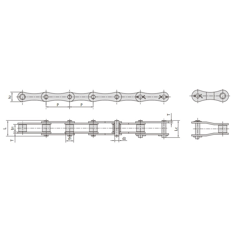 - Speciális csatlakozásokkal összekapcsolt láncszemekből állnak, amelyek folyamatos láncot alkotnak a stabil erőátvitel hatékonysága érdekében.